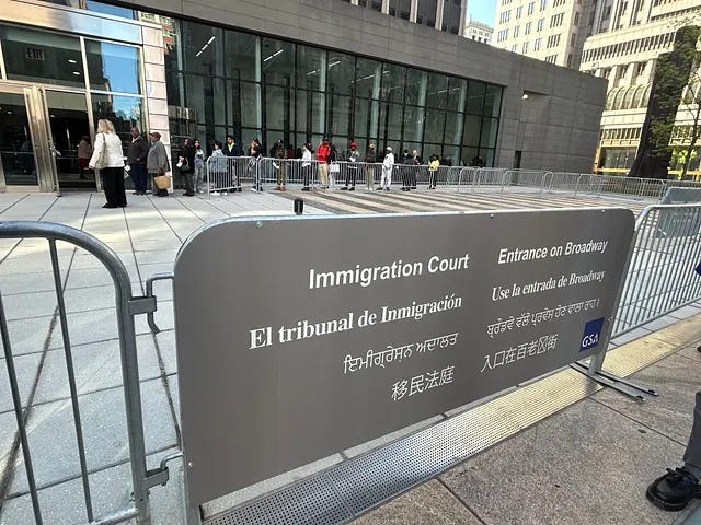 It reads like a dark procedural farce — if the stakes weren’t so dire and so realistic. One lawyer refuses to name a country for his client’s removal, why make the government’s job easier? The judge assigns one anyway. He then, briefly, invokes the Convention Against Torture. The Homeland Security lawyer points out he asylum seeker has a theft conviction, so his removal is expedited.